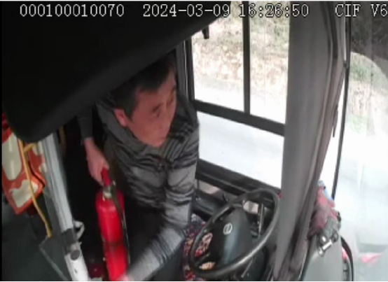 他立即將車輛安全停靠在路邊,迅速解開安全帶,提起身邊的滅火器奔向著火車輛。利用日常掌握的消防滅火知識,準(zhǔn)確找到起火位置,對準(zhǔn)火焰根部進(jìn)行噴射,火勢很快得到了控制。為防止火勢復(fù)燃,他又即刻返回車上,拿起水桶對準(zhǔn)車輛著火點(diǎn)進(jìn)行二次覆滅。在確保險(xiǎn)情徹底消除后,他才放心返回車上繼續(xù)執(zhí)行營運(yùn)任務(wù)。整個救援過程,短短幾分鐘,規(guī)范、準(zhǔn)確、快速、高效,及時消除了火災(zāi)事故。
